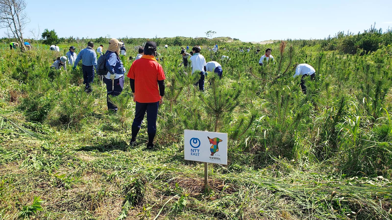 原さん「NTT東日本 千葉事業部の森づくり」は、地元千葉県の山武市蓮沼海岸で2023年4月から行っています。千葉事業部エリアである千葉県・茨城県は自然災害の多いところです。我々はインフラを支える企業として、そうした災害時に迅速な復旧に努める使命がありますから、ある意味では常に自然災害に対する高い意識を持っている必要があります。「NTT東日本 千葉事業部の森づくり」も災害教育プログラムの一環で始めたことでした。実はこの災害教育は、当初、座学でスタートしたんです。ただそれだけでは実感がわきづらく、社員のコミットの強度にも限界があるのではないかと考えまして。
